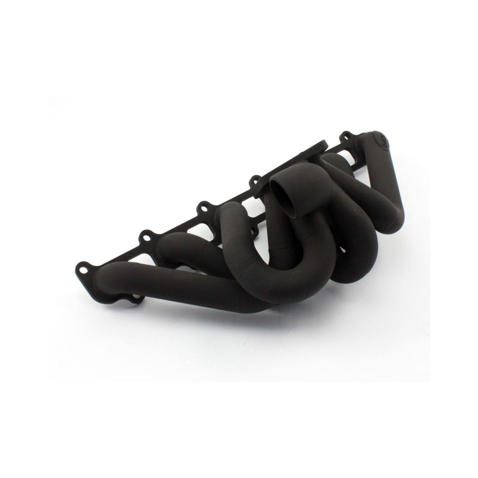 • Durable and Reliable: Each manifold is hand-made, starting with a CNC machined flange and ending with a bespoke merge collector. The construction includes welding and sandblasting inside and out, followed by a high-temperature black enamel coating.