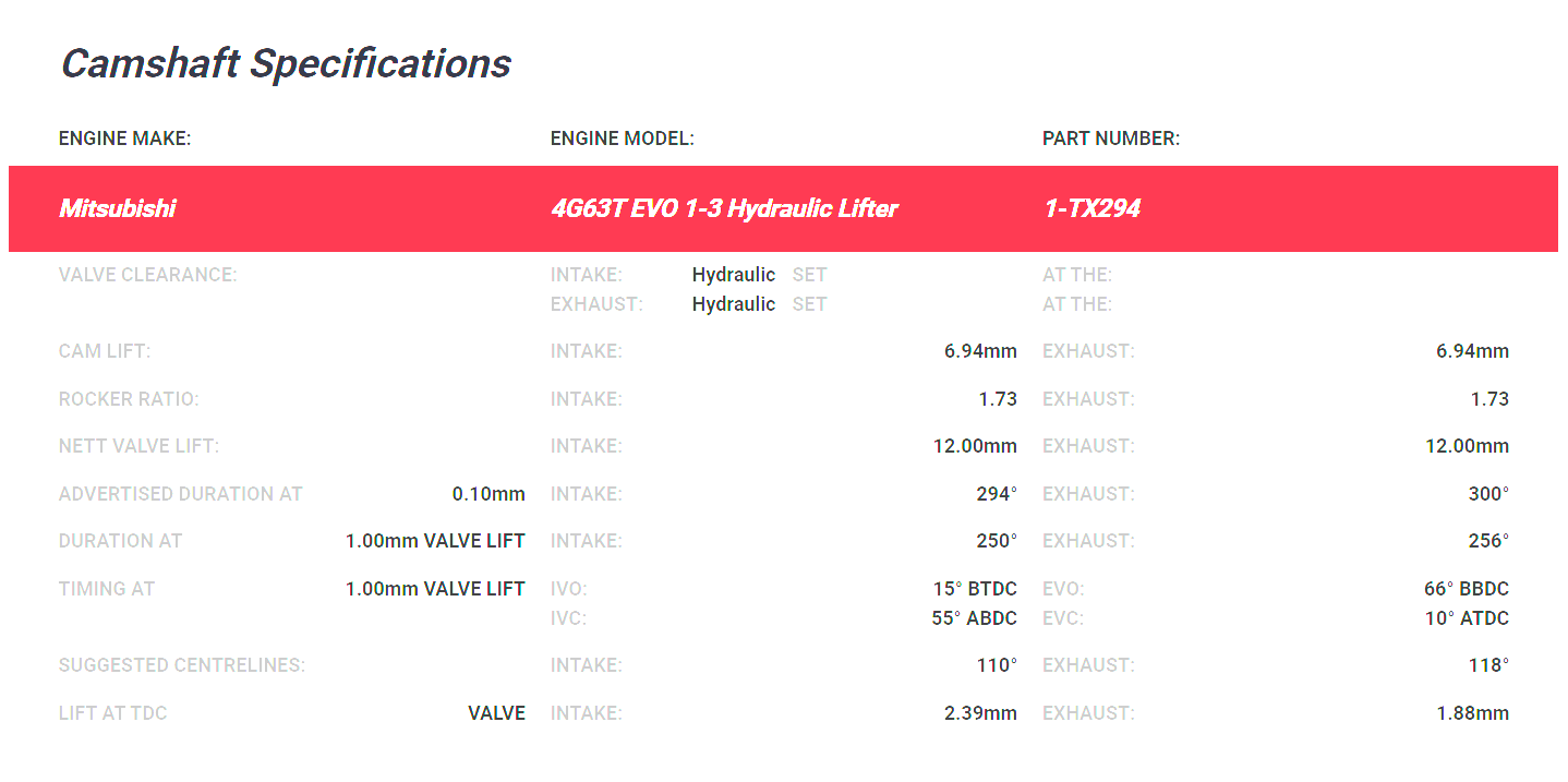 Kelford Mitsubishi Evo 1-3 & VR4 4G63T Camshafts 294/300 Hydraulic 1-TX294